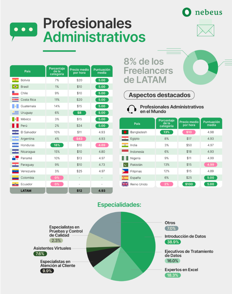 Por el contrario, a pesar de que la administración es el área con menos cantidad de freelancers, se podría decir que es la más asequible de todo el mundo.