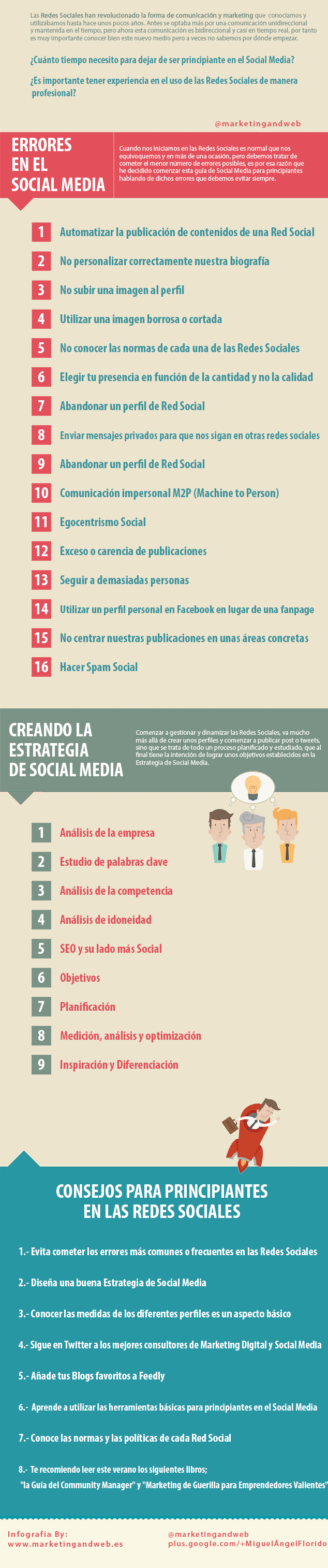 Esta infografía realizada por Marketing&Web, presenta una guía totalmente fácil de realizar con lo que debes y no debes hacer en Redes Sociales, está estructurado de la siguiente manera: