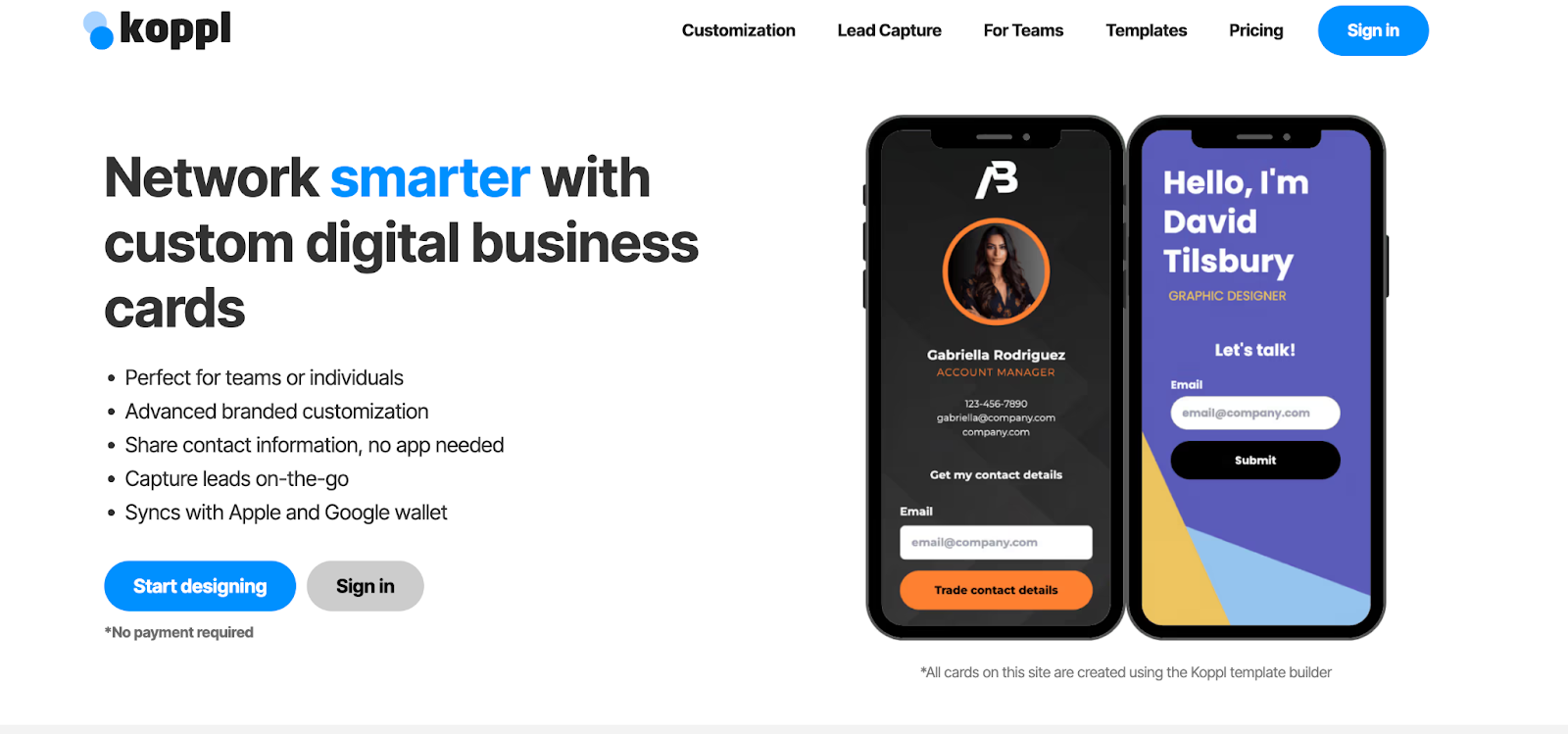 Por qué está en nuestra lista: Kopplcard trata el networking como un proceso empresarial medible en lugar de solo una actividad social. Destaca entre las mejores tarjetas de presentación digitales por su enfoque centrado en la generación de prospectos y seguimiento de conversiones, ideal para organizaciones impulsadas por ventas que necesitan justificar el ROI del networking.