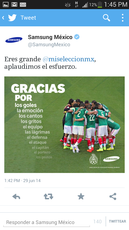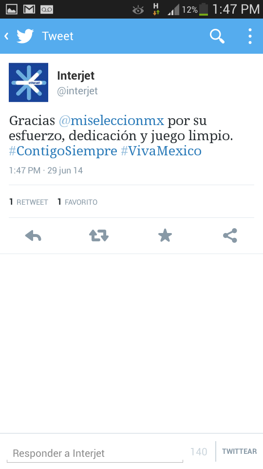 Lo que desencadenó la derrota de México en el mundial con las marcas en Twitter. Despues de la derrota de México en el mundial diferentes marcas lanzaron tweets con el único objetivo de poder conectar con su público y demostrar el lado humano de la marca. Unos mas creativos que otros esto fue lo que se publicó: Interjet