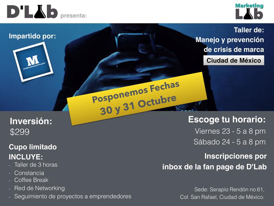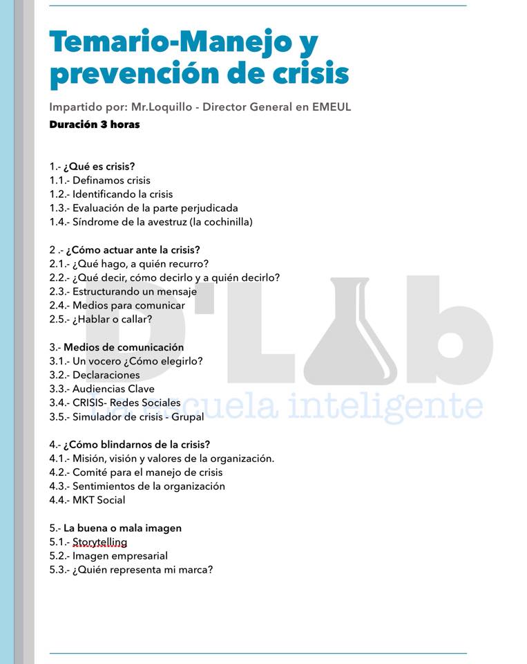 ¡Hola colegas! Les comento que hemos realizdo una alianza con el equipo de D’Lab, donde estaremos regalando una entrada para el Taller de Crisis que será dictado por el líder y fundador de la comunidad Ese Mercadólogo es un Loquillo, más conocido como Mr. Loquillo.