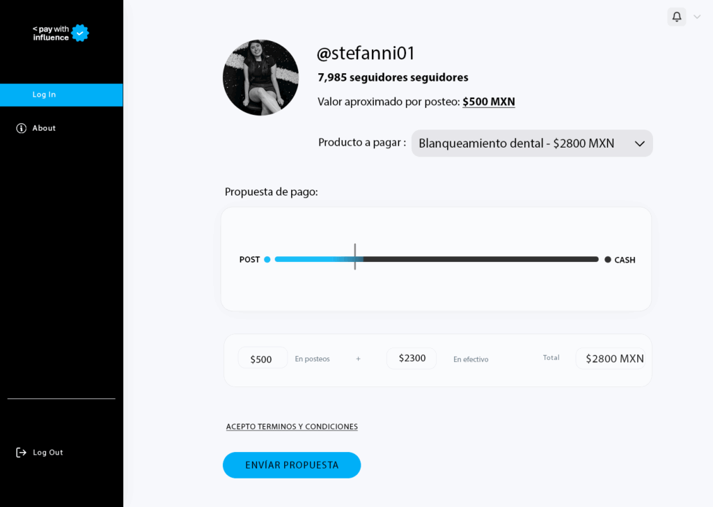 Pay With Influence cambia ese modelo al convertir la colaboración en una transacción estructurada, transparente y medible. La plataforma verifica el perfil del micro influencer y analiza métricas de impacto, y engagement para establecer rangos de pago más justos tanto para el creador como para el emprendedor.